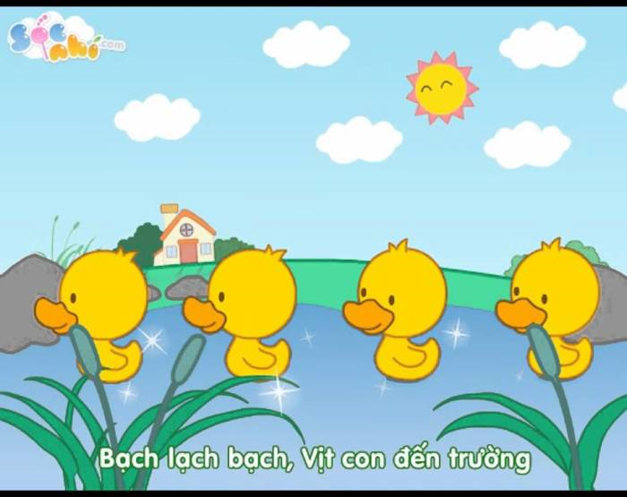 Không đợi đồng hồ rung chuông báo thức, Vịt Con vẫn dậy sớm hơn mọi ngày, chú háo hức mong chóng sáng để mẹ đưa đi học, chả là hôm nay ngày đầu tiên Vịt con tới lớp. Vịt Con thích lắm, dọc đường chú cứ hát suốt.