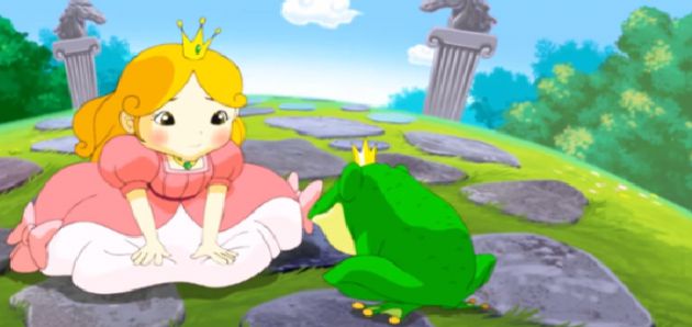 Nàng nhìn quanh xem tiếng nói vang từ đâu tới, chợt thấy một con Ếch nhô chiếc đầu to tướng và xấu xí lên khỏi mặt nước. Nàng bảo: