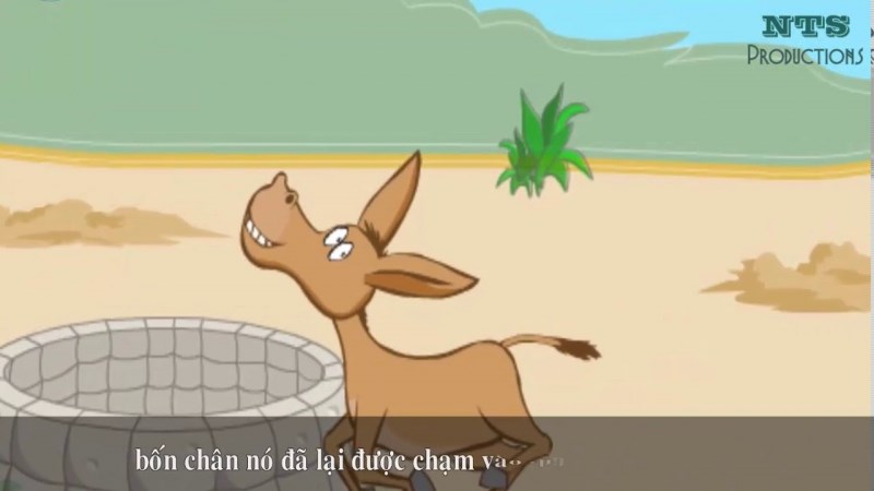 Con cáo đáp: “Nếu cậu hát, con người sẽ biết mình đang phá hoại mùa màng của họ và sẽ chạy đến đánh chúng ta chết mất”. Con lừa không nghe lời khuyên của cáo mà vẫn hát. Thấy vậy, con cáo đã nhanh chóng nhảy qua hàng rào và biến mất trước khi dân làng đến đánh lừa.