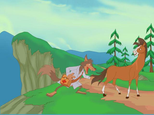 Nó bắt đầu hét lên thất thanh giống như mình đang bị thương rất nặng. Vừa nghe thấy tiếng hét, con Sói đang không biết chuyện gì xảy ra nên đã tiến lại gần và hỏi:
