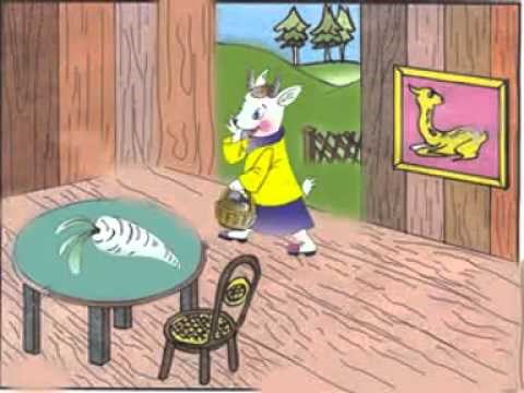 Dê con đi kiếm ăn, nó kiếm được một cái bắp cải, Dê con ăn một nửa còn một nửa để dành cho ngày hôm sau. vừa mở cửa vào nhà, Dê con nhìn thấy củ cải trắng trên bàn, nó ngạc nhiên kêu lên: