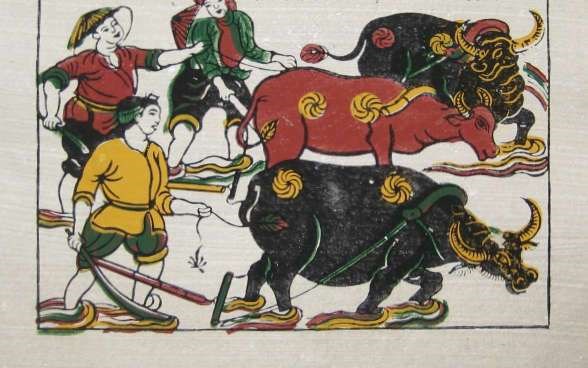Một hôm, Hổ bắt được một con trâu đi lạc, chàng nghĩ thầm:
