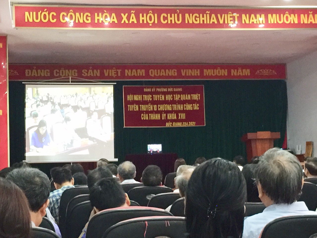 Thực hiện Nghị quyết Đại hội đại biểu lần thứ XVII Đảng bộ thành phố; căn cứ Kế hoạch số 21-KH/TU ngày 22/03/2021 của Thành ủy Hà Nội về “Nghiên cứu, học tập, quán triệt, tuyên truyền và triển khai thực hiện Nghị quyết Đại hội đại biểu lần thứ XIII của Đảng và 10 Chương trình công tác Thành ủy khóa XVII, Ban Thường vụ Thành ủy Hà Nội tổ chức Hội nghị trực tuyến và truyền hình trực tiếp để triển khai học tập, quán triệt, tuyên truyền rộng rãi 10 Chương trình công tác của Thành ủy khóa XVII tới cán bộ, đảng viên và nhân dân.