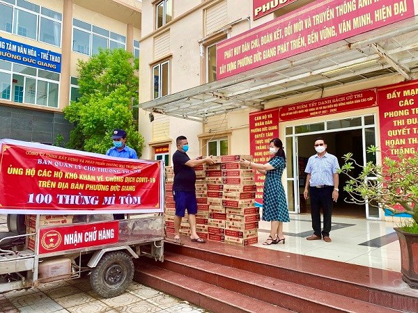 Chung tay cùng các cấp uỷ, chính quyền trên địa bàn quận, nhiều cá nhân, tổ chức, doanh nghiệp đã tích cực tham gia chăm lo an sinh xã hội, kịp thời thăm hỏi, động viên, hỗ trợ kinh phí, nhu yếu phẩm thiết yếu cho các hộ gia đình chính sách, hộ nghèo, tàn tật, thất nghiệp, bệnh tật, người nhập cư… Tính đến ngày 11/8/2021, Quận cùng với các cá nhân, đơn vị, doanh nghiệp hỗ trợ cho các lực lượng tuyến đầu chống dịch và hỗ trợ cho các hoàn cảnh khó khăn, với gần 2 tỷ đồng, trên 2.500 xuất quà (mỗi xuất từ 200-500 nghìn đồng) và hàng chục tấn gạo, mì tôm, dầu ăn, rau, củ quả, trứng… , trong đó: Ông Nguyễn Văn Hậu, tập đoàn Phúc Sơn – tổ 4 phường Bồ Đề ủng hộ 30 tấn gạo, tương đương 450 triệu đồng; Công ty TNHH và Thương mại Thạch Bàn ủng hộ 1 tấn gạo, 200 thùng mì tôm, trị giá 40 triệu đồng; Công ty TNHH xây dựng và phát triển thương mại Trường Thanh ủng hộ 100 thùng mì tôm; Công ty Homeland ủng hộ 10 triệu đồng, nước và bánh mì; Ban quản lý Chợ Ngọc Thuỵ ủng hộ 50 triệu đồng; Đạo tràng pháp hoa Quan âm chùa Ngọc Lâm ủng hộ 60 xuất quà bằng tiền mặt cho 60 hoàn cảnh khó khăn, mỗi xuất 500 nghìn đồng; gia đình anh Tuấn – phường Đức Giang ủng hộ 10 triệu đồng; gia đình ông Nghiêm Đình Nguyên – tổ 9 phường Thạch Bàn ủng hộ 3 tạ gạo; gia đình Giỏi – tổ 3 phường Thạch Bàn ủng hộ 2 tạ gạo… và còn rất nhiều các cá nhân, đơn vị, doanh nghiệp khác đã, đang và sẽ đồng hành cùng với Quận, tiếp tục chăm lo kịp thời cho các hoàn cảnh khó khăn nói chung và do ảnh hưởng của đại dịch Covid-19 trên địa bàn quận.