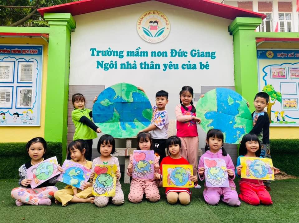 Các Bé yêu lớp MGL A1 Trường mầm non Đức Giang cùng nhau trải nghiệm với màu nước và giấy bìa để hưởng ứng “Ngày khí tượng thế giới” và “Giờ Trái đất”.